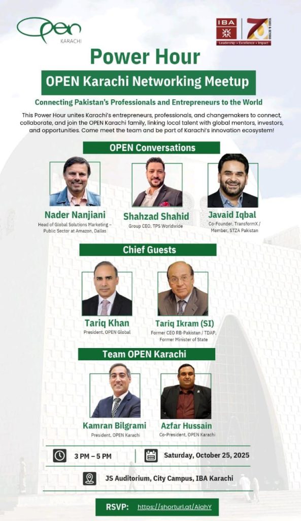 This Power Hour unites Karachi’s entrepreneurs, professionals, and changemakers to connect, collaborate, and join the OPEN Karachi family — linking local talent with global mentors, investors, and opportunities. Come meet the team and be part of Karachi’s innovation ecosystem!
